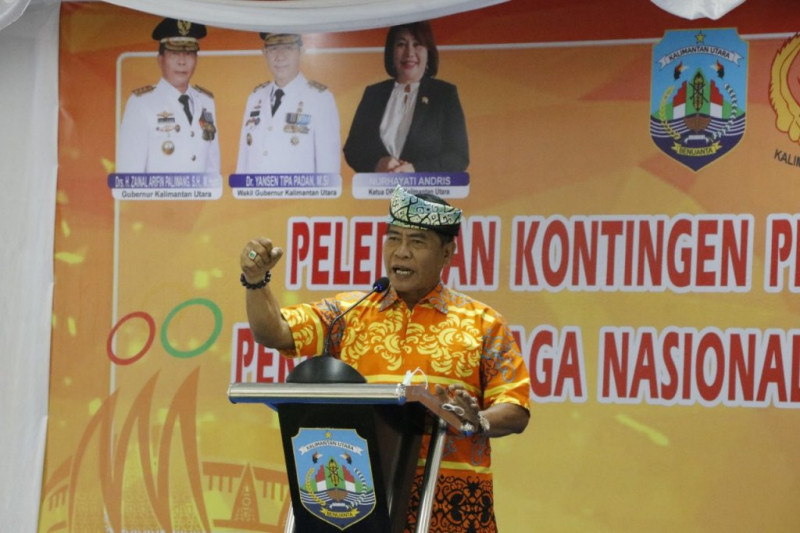 TANJUNG SELOR - Bertempat di Aula Kantor Gabungan Dinas Pemerintah Provinsi (Pemprov) Kalimantan Utara, Senin (27/9), Gubernur Kalimantan Utara Zainal A. Paliwang melepas kontingen Kaltara yang akan bertanding dalam Pekan Olahraga Nasional (PON) ke XX di Papua.